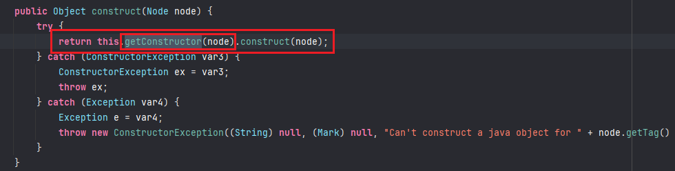 进入else以后,先来将node加入到recursiveObjects集合中,然后再获取node相应的构造函数,这里获取到的是默认的 yaml的构造函数,然后就进入对象构造中;